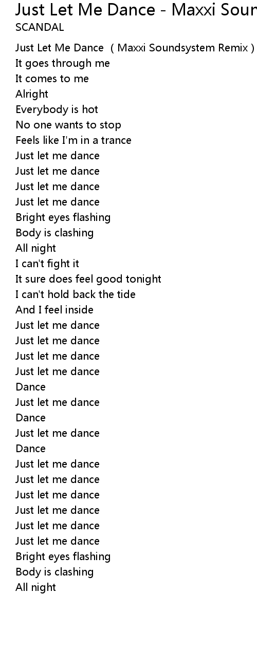 | [00:00.480] | Just Let Me Dance Maxxi Soundsystem Remix Scandal |