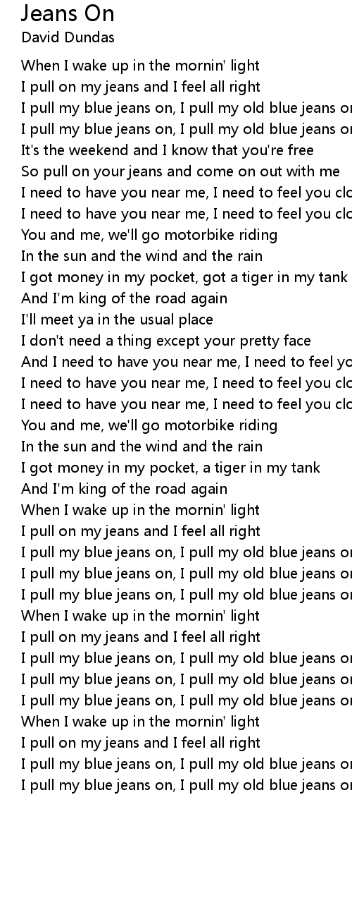 I pull my blue jeans on, I pull my old blue jeans on (ch-ch, ch-ch, ch-ch) |