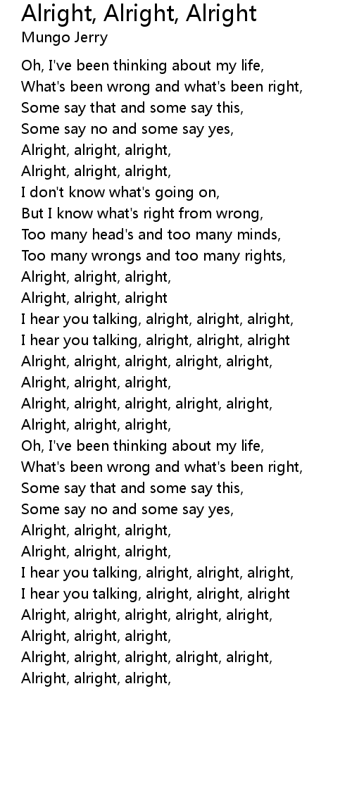 Alright, alright, alright, alright, alright, |