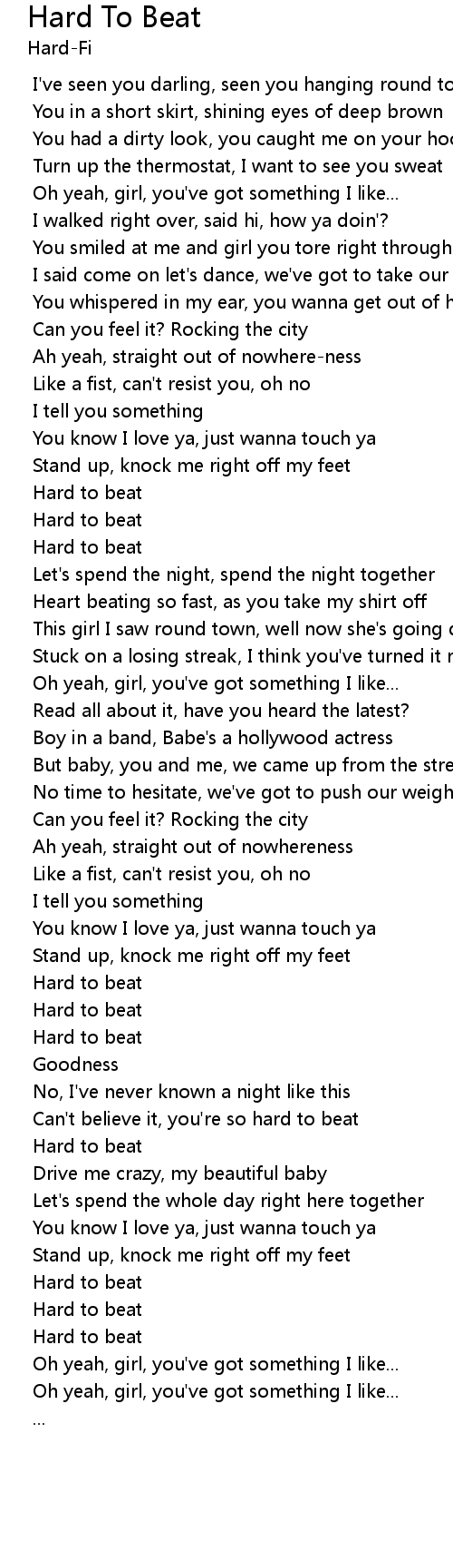 Can't believe it, you're so hard to beat |
