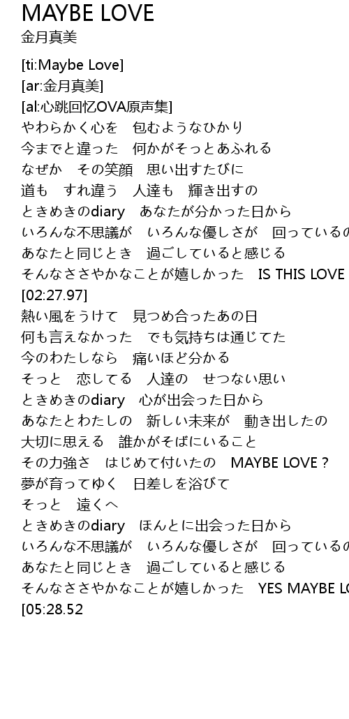 | [05:16.07] | そんなささやかなことが嬉しかった YES MAYBE LOVE |