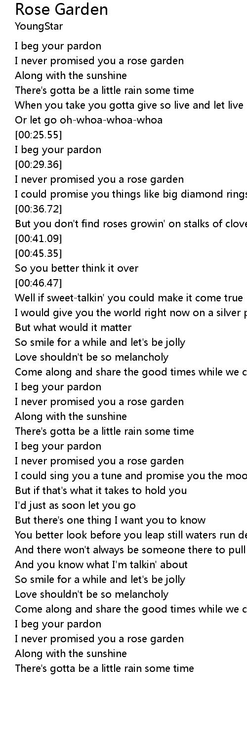 I never promised you a rose garden |