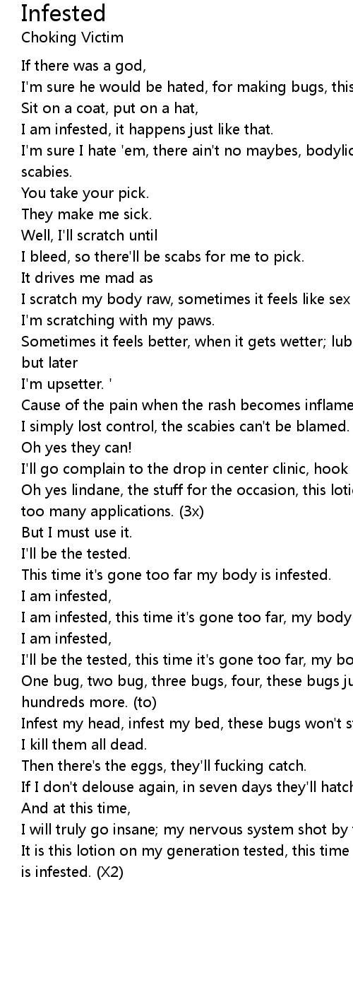 Infest my head, infest my bed, these bugs won't stop infesting 'til |