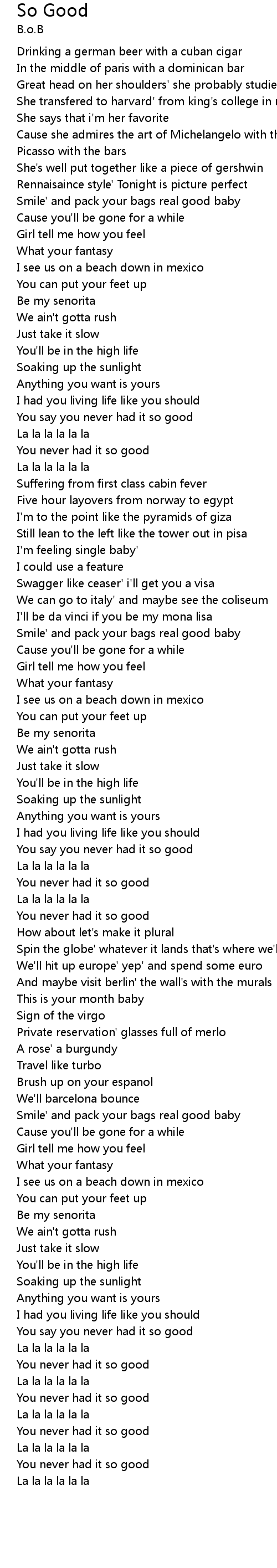 Smile' and pack your bags real good baby |