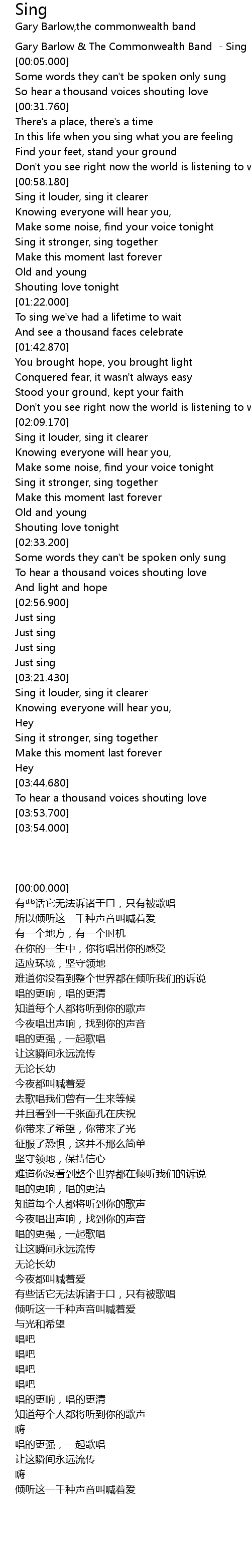 [00:00.000] Gary Barlow & The Commonwealth Band - Sing