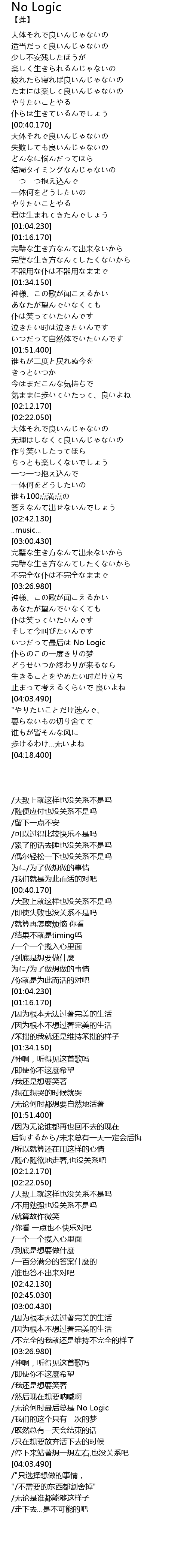 | [03:41.530] | zuì hòu No Logic |
