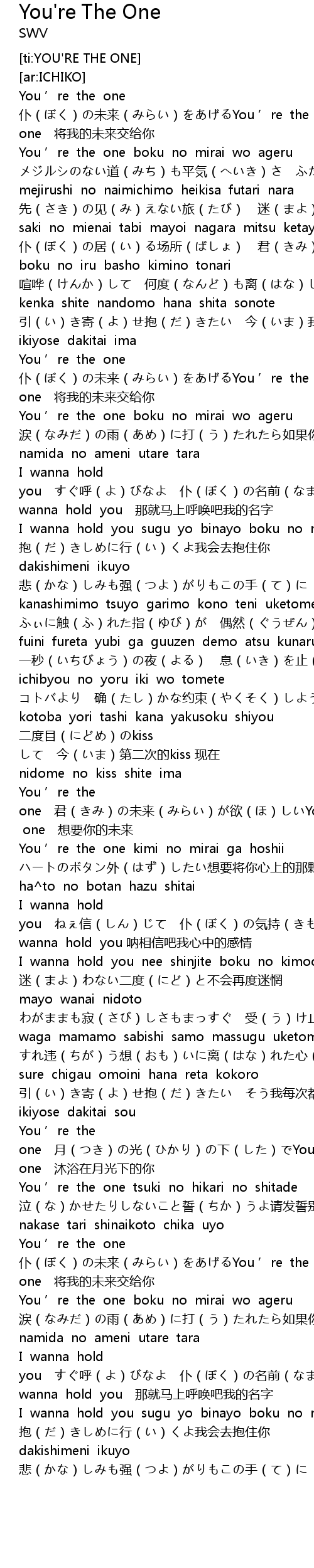 | [00:03.04] | You ' re the one pū wèi lái You ' re the one jiāng wǒ de wèi lái jiāo gěi nǐ |