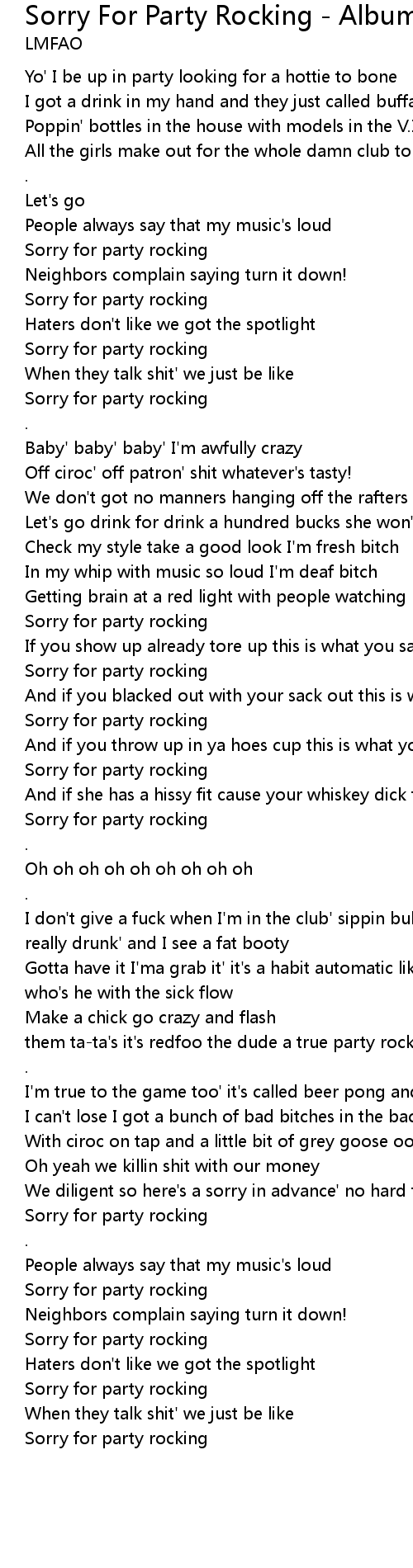 | Song | Sorry For Party Rocking - Album Version (Explicit) |