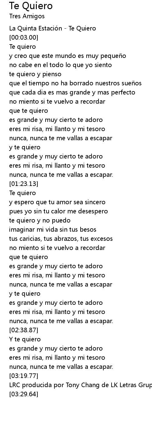 | [00:01.00] | La Quinta Estació n Te Quiero |