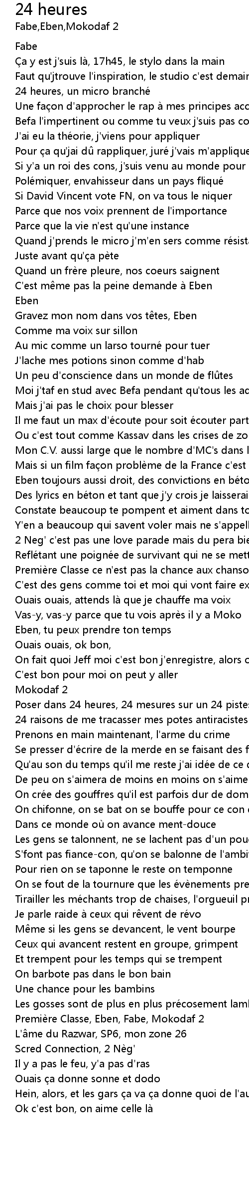 | Des lyrics en be ton et tant que j' y crois je laisserais pas be ton | |