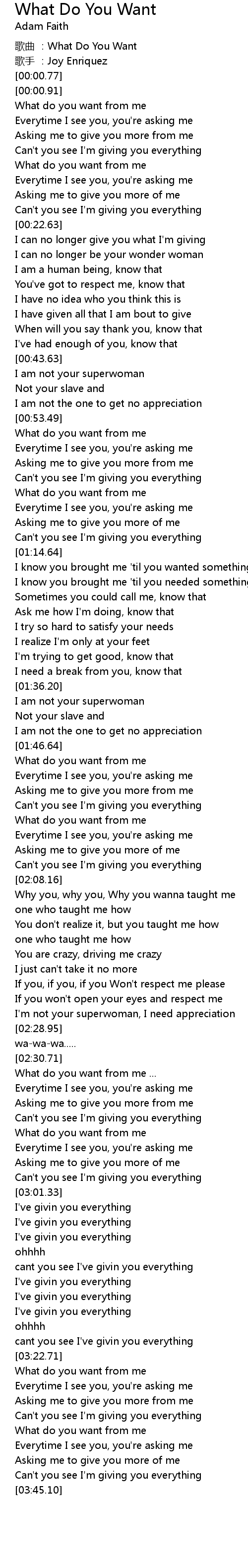 | [00:55.65] | Everytime I see you, you' re asking me |