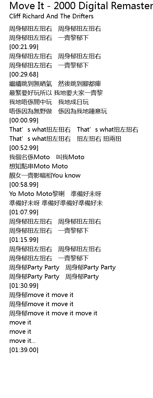 | [01:31.00] | 周身郁move it move it |