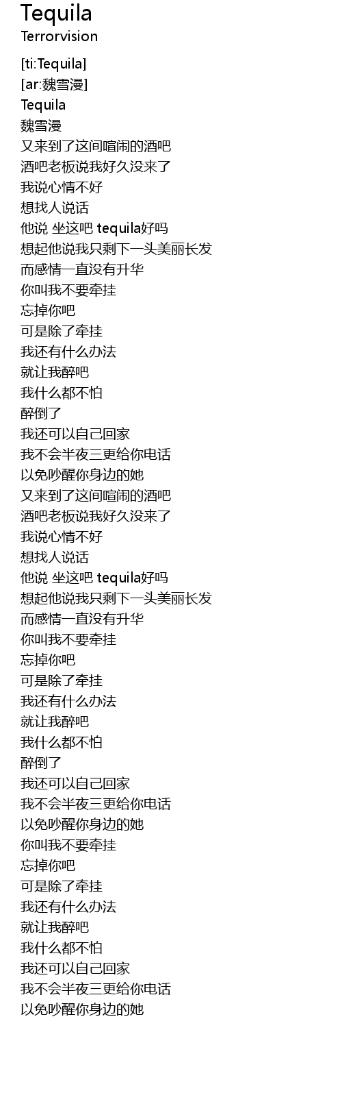 | [00:53.03] | ta shuo zuo zhe ba tequila hao ma |