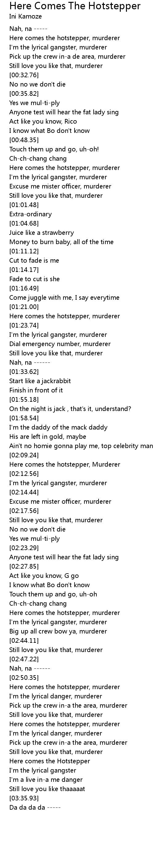 Here comes the hotstepper, Murderer |