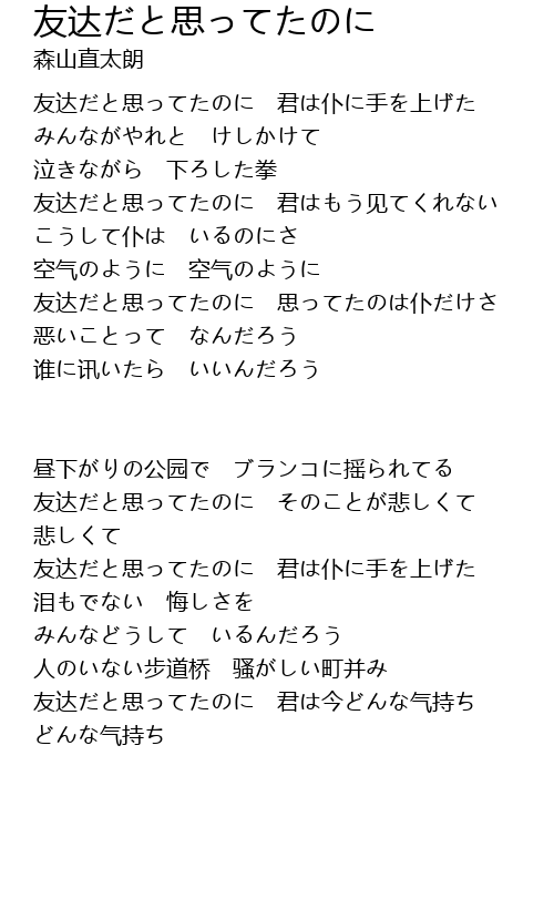 | 友达だと思ってたのに 思ってたのは仆だけさ | |