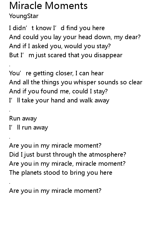 | [05:00.25] | Are you in my miracle moment? |