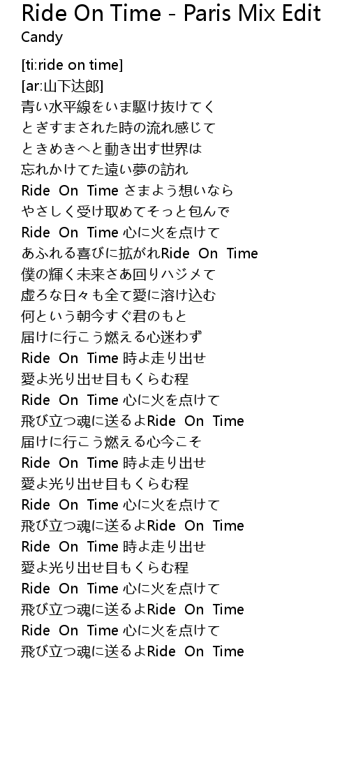 | [00:57.434] | Ride On Time xīn huǒ diǎn |
