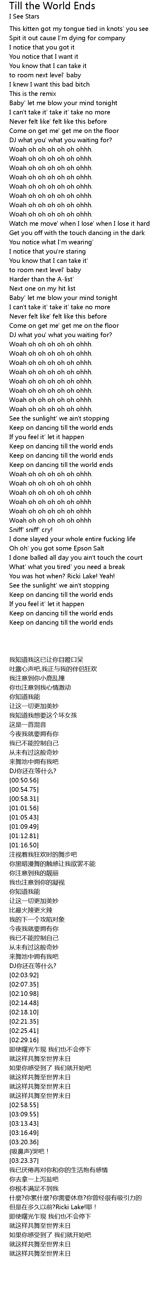 Keep on dancing till the world ends |