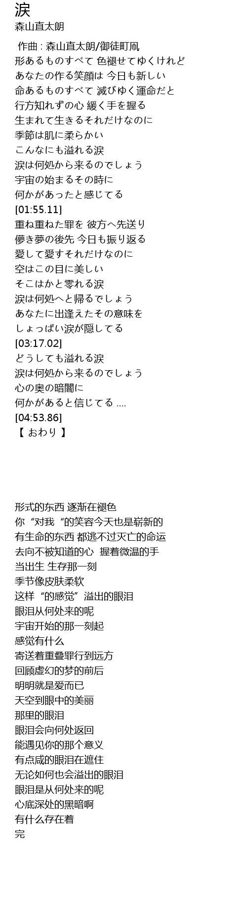 | [00:00.00] | 作曲 : 森山直太朗/御徒町凧 |