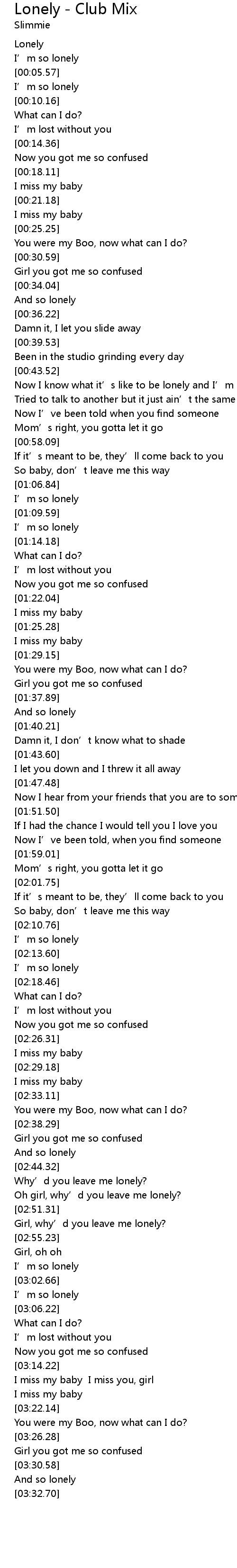 | [02:48.12] | Oh girl, why’d you leave me lonely? |