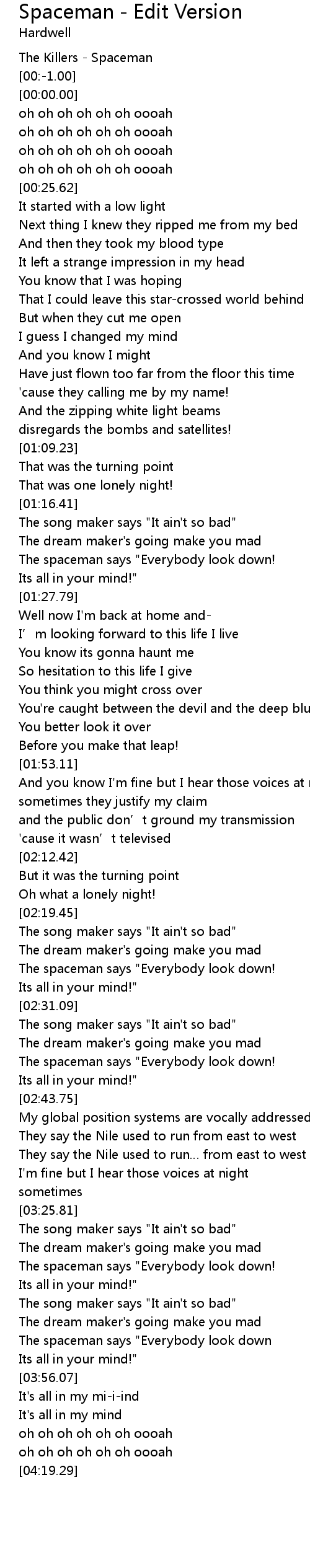 | [02:38.34] | The spaceman says "Everybody look down! |