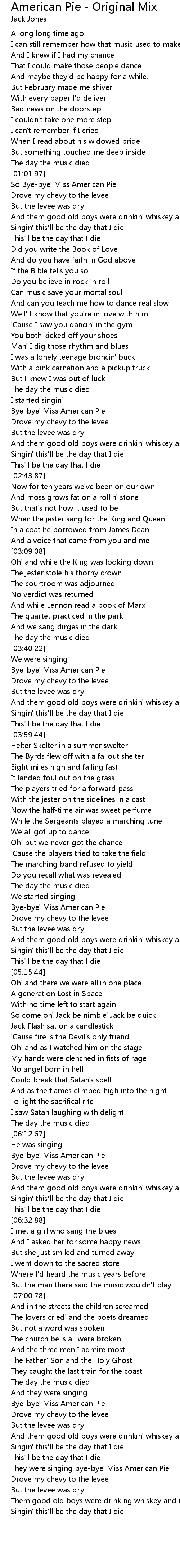 So Bye-bye' Miss American Pie |