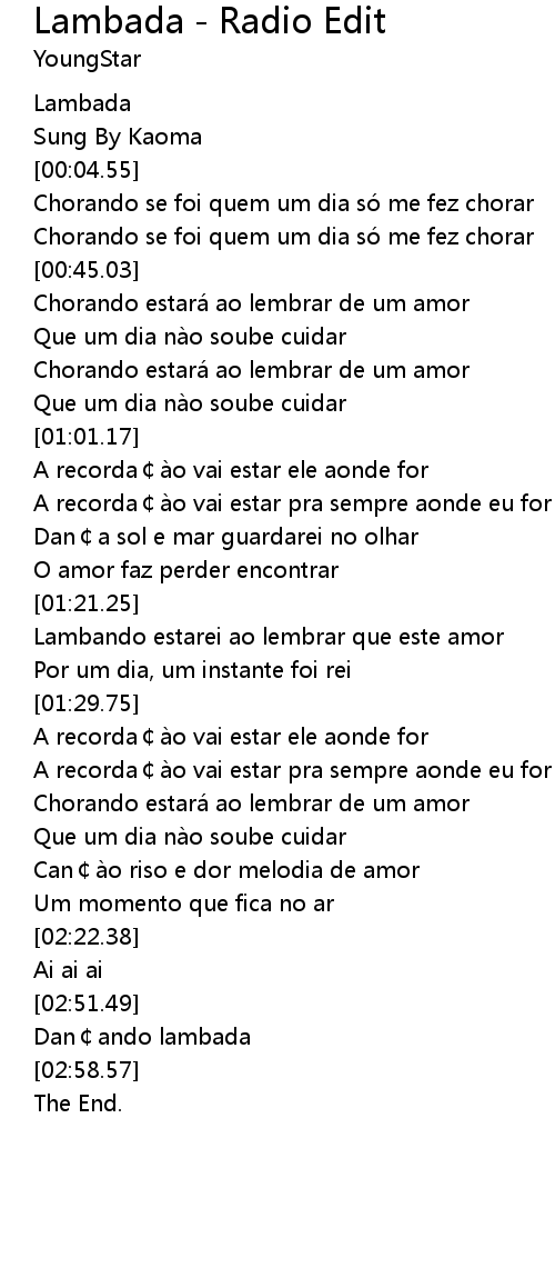 | [00:00.93] | Lambada |