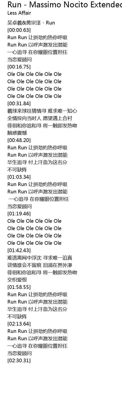 | [00:00.17] | 吴卓羲&黄宗泽 - Run |