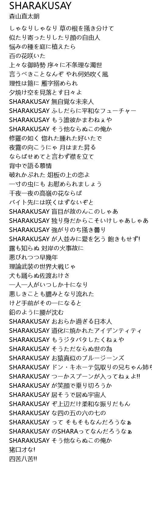 | SHARAKUSAY のSHARAってなんだろうなぁ | |