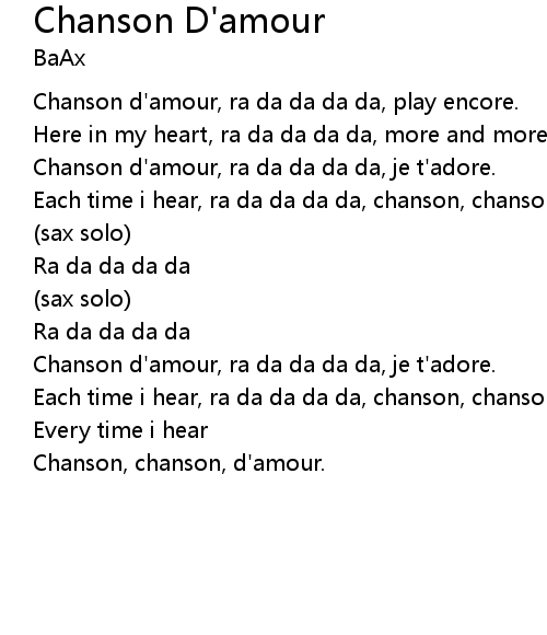 | Chanson d'amour, ra da da da da, play encore. | |