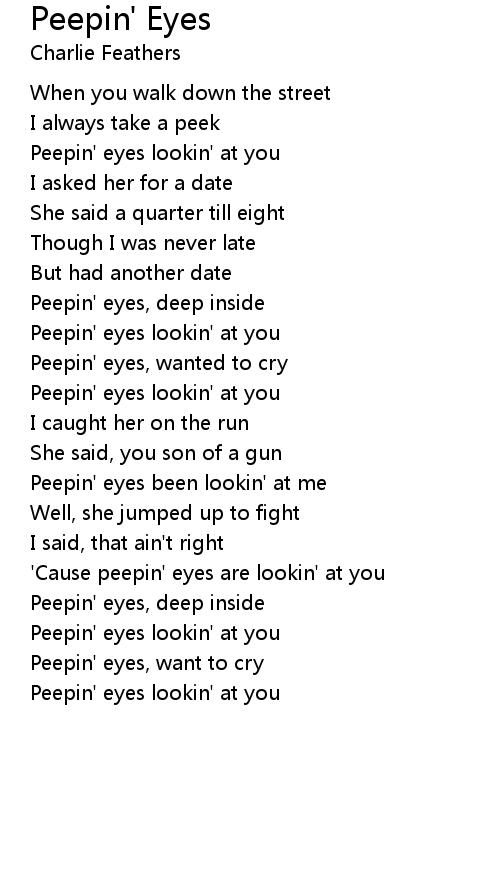 Peepin' eyes, wanted to cry |