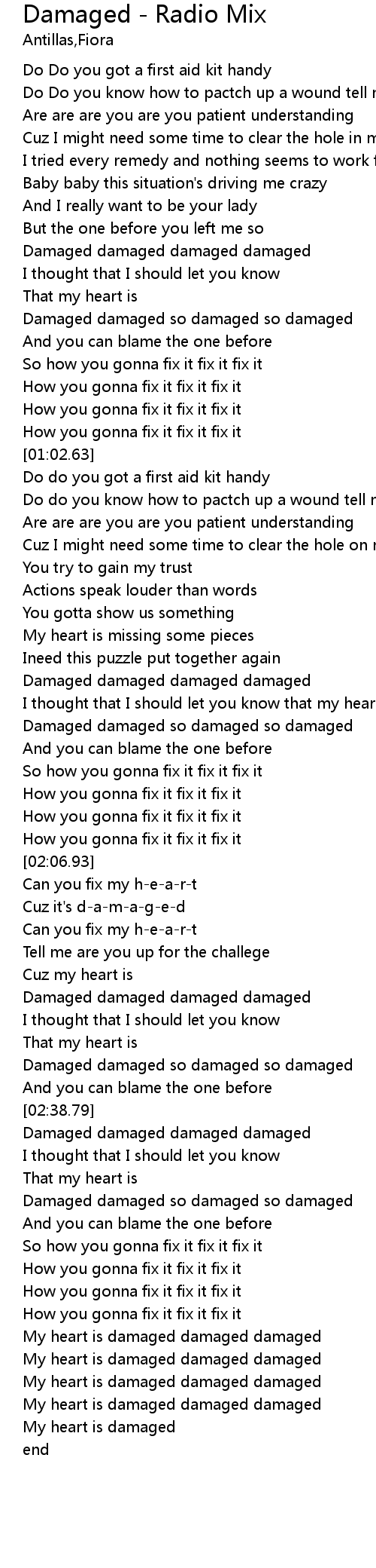 | [02:39.47] | Damaged damaged damaged damaged |