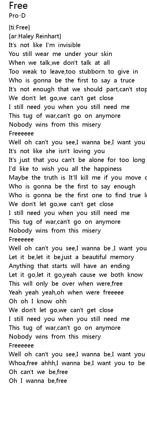 [01:13.01] Well oh can't you see,I wanna be,I want you to be,free