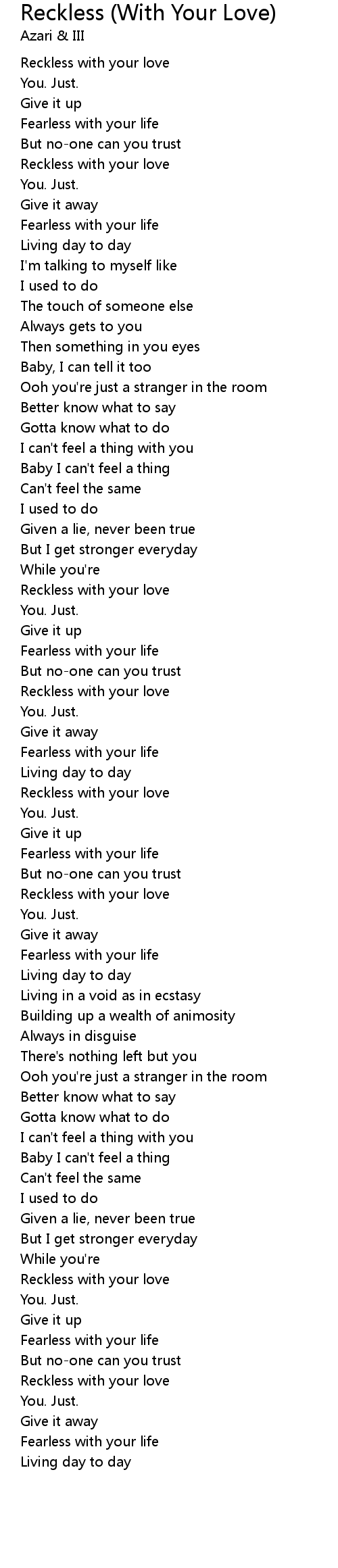 Reckless with your love |