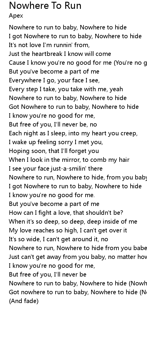 I got Nowhere to run to baby, Nowhere to hide |