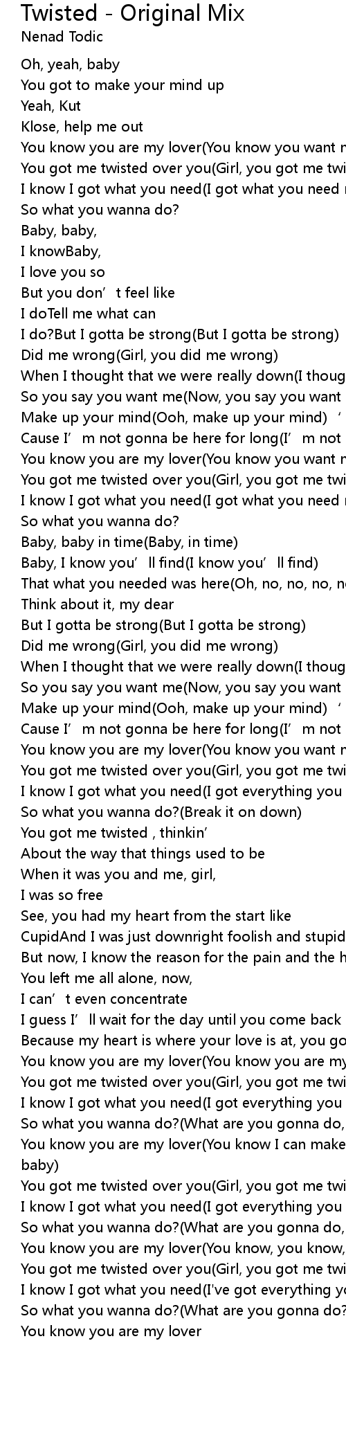 | You got me twisted over you(Girl, you got me twisted, baby) | |