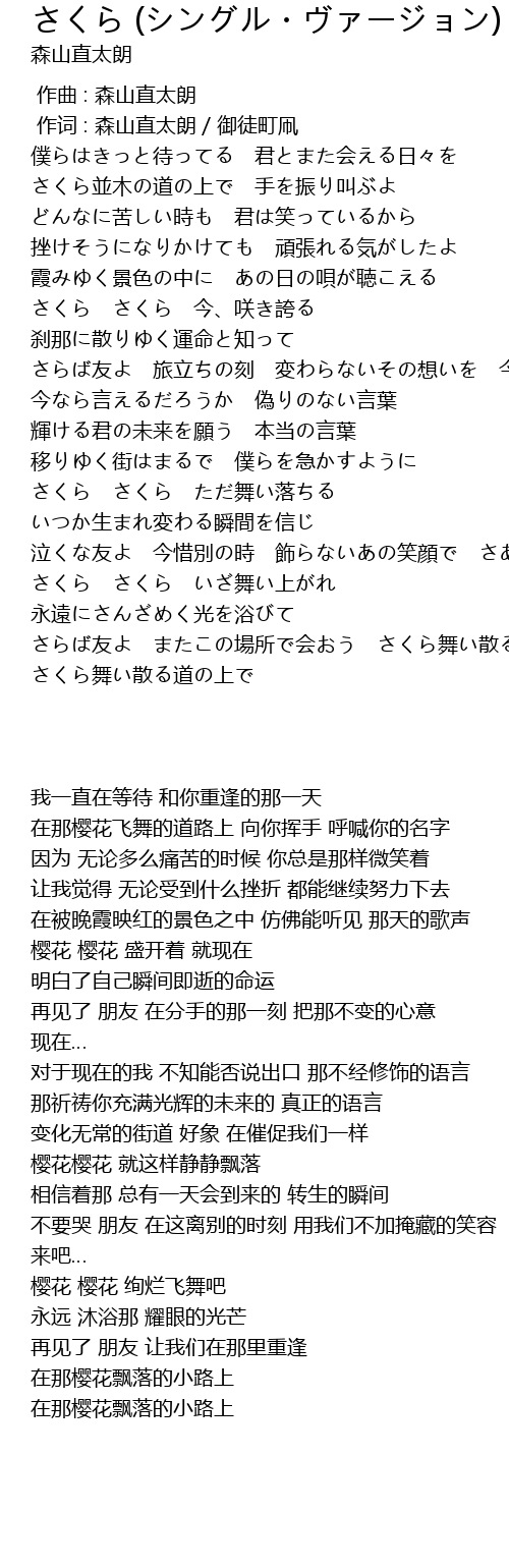 | [03:24.503] | さらば友よ またこの場所で会おう さくら舞い散る道の上で |