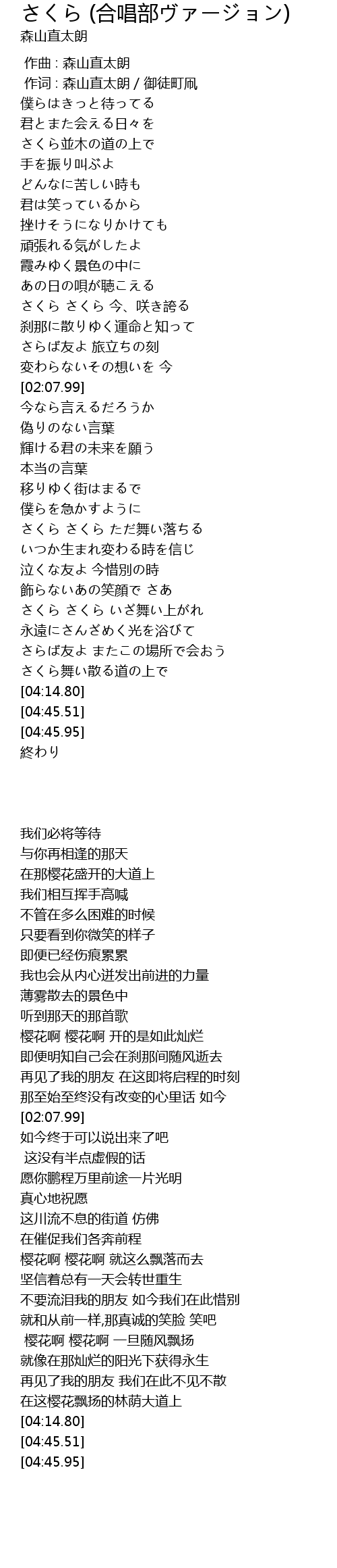 | [01:37.33] | さくら さくら 今、咲き誇る |