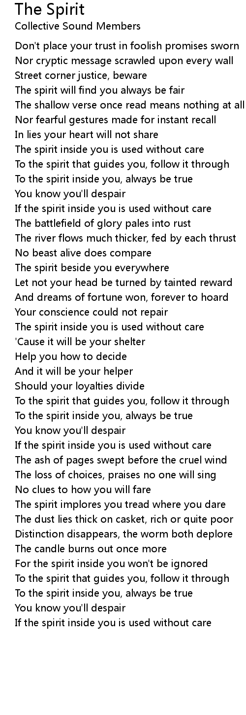 To the spirit that guides you, follow it through |