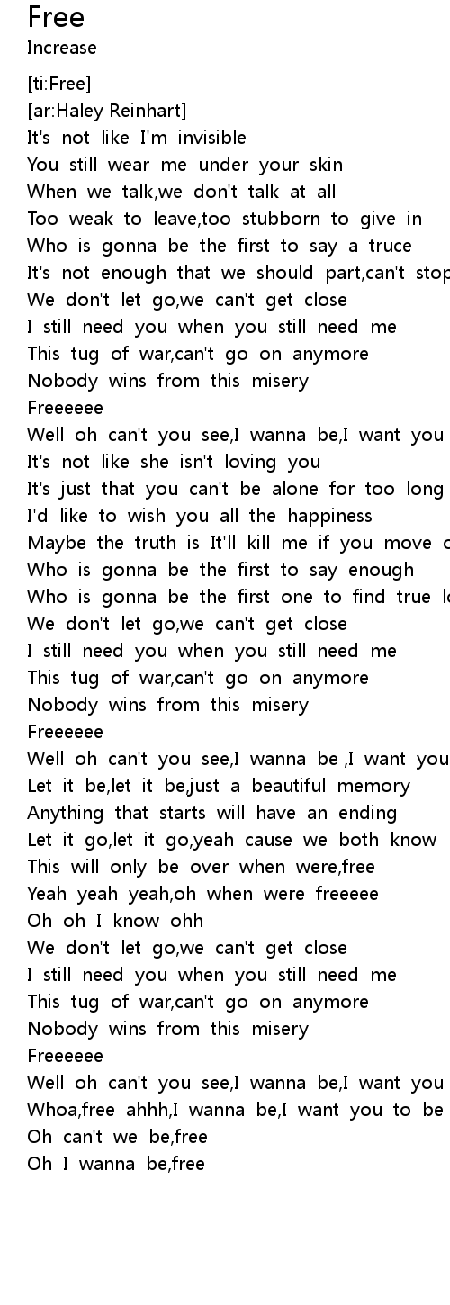 [01:13.01] Well oh can't you see,I wanna be,I want you to be,free
