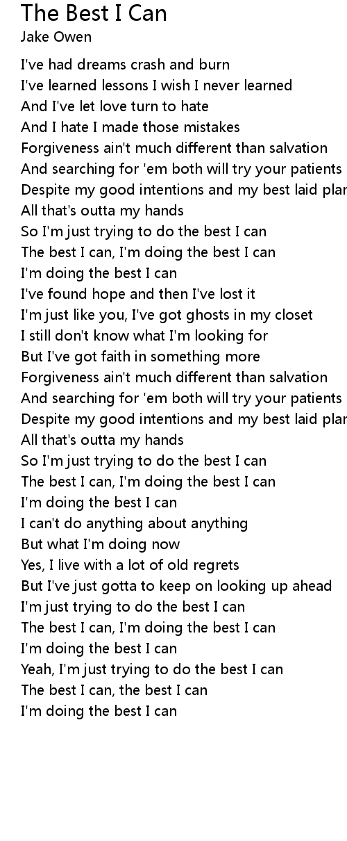 The best I can, I'm doing the best I can |