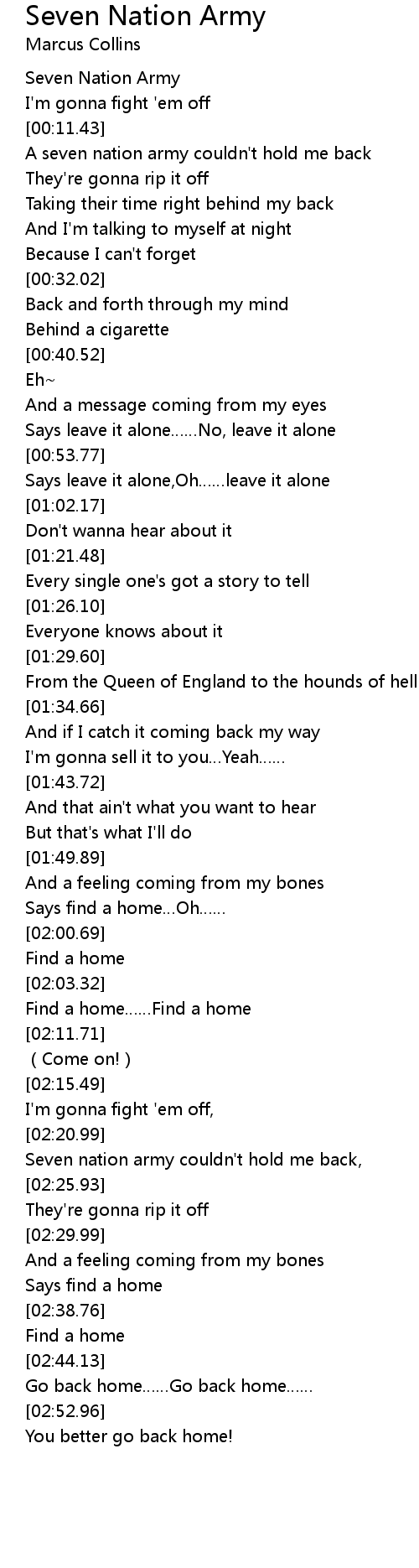 | [00:12.49] | A seven nation army couldn't hold me back |