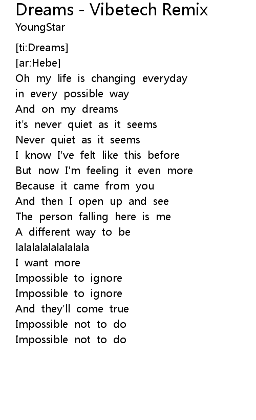 Dreams - Vibetech Remix Lyrics