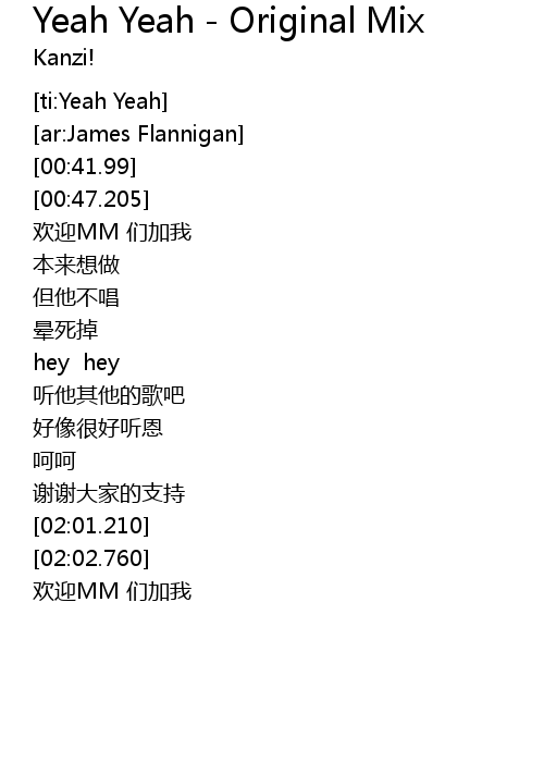 | [02:06.911] | huān yíng MM men jiā wǒ |