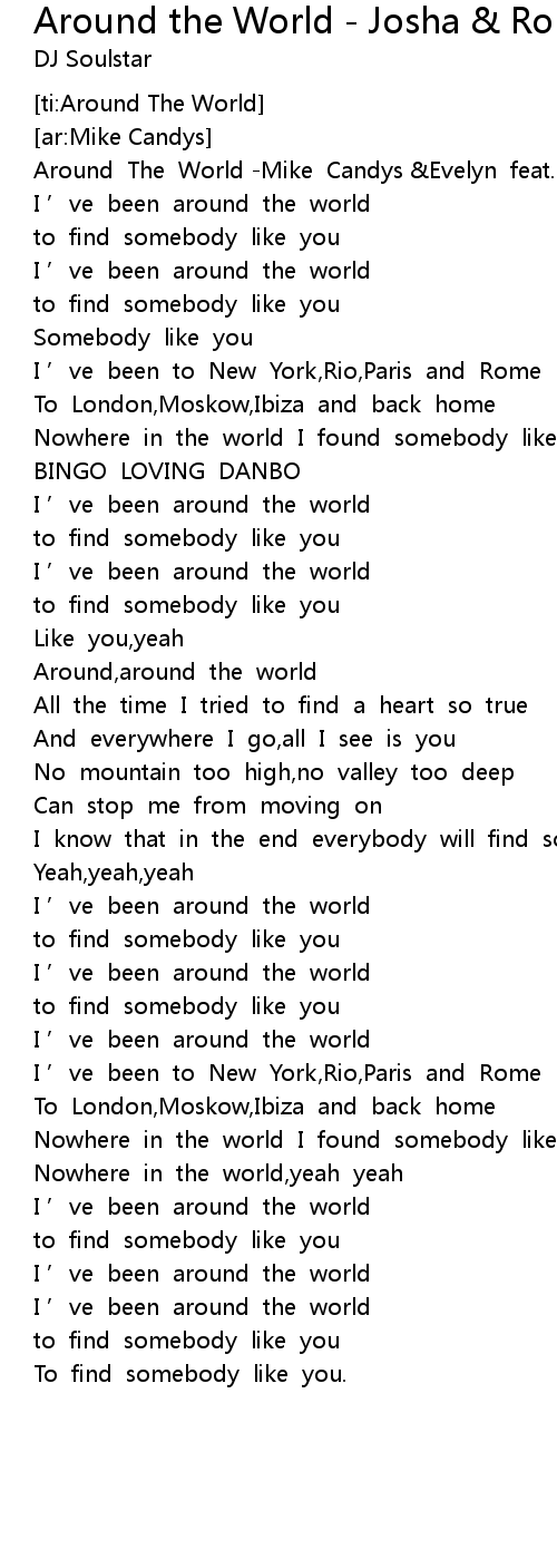 | [00:00.47] | Around The World -Mike Candys &Evelyn feat.David Deen |