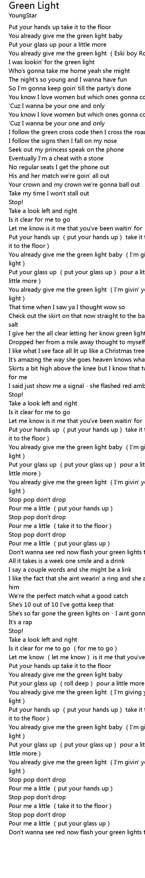 | [03:32.98] | You already give me the green light (I'm givin' you the green light) |