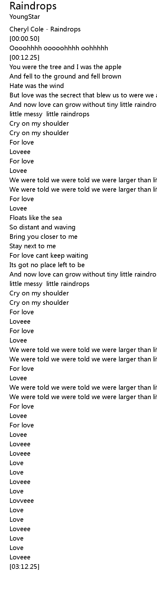 And now love can grow without tiny little raindrop tiny little tiny little messy little raindrops |