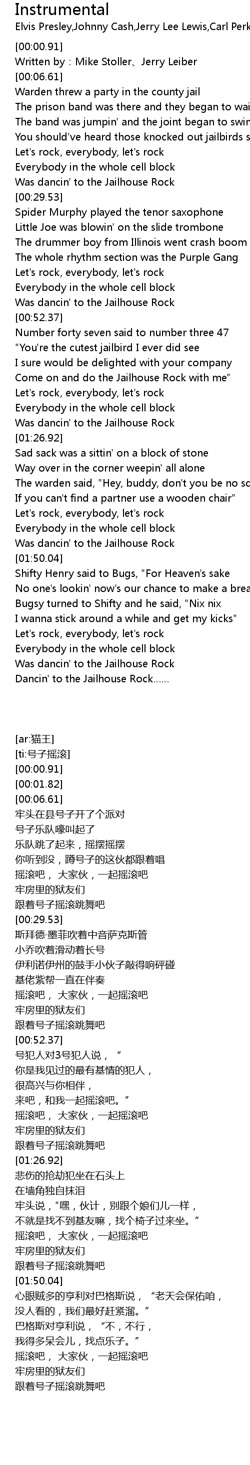 | [01:00.94] | Come on and do the Jailhouse Rock with me" |