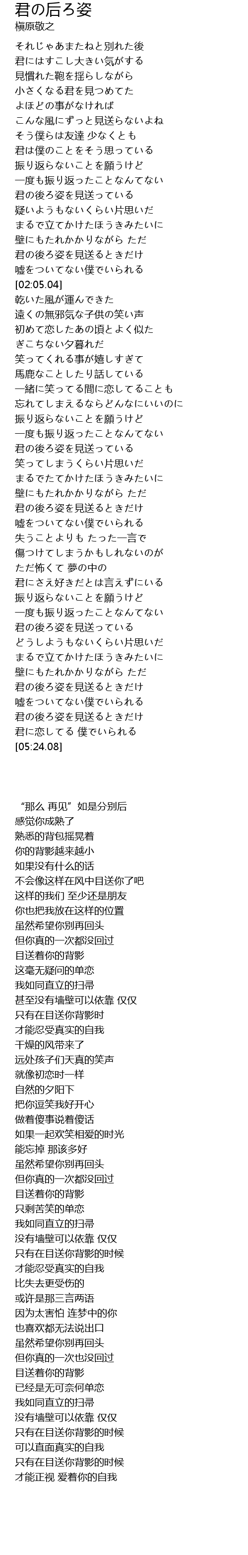 | [03:16.12] | 君の後ろ姿を見送っている |
