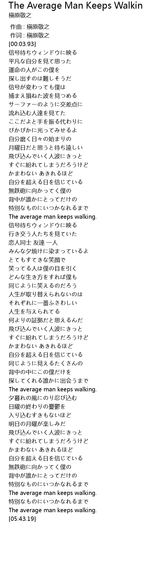 | [00:01.00] | 作词 : 槇原敬之 |